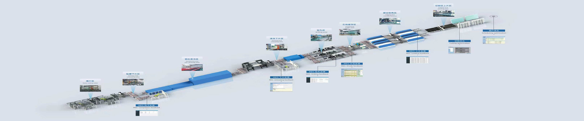 This architectural glass drilling automation processing case involves connecting the drilling equipment with bilateral machines, upper and lower cutting tables, and cleaning machines to achieve wire processing of large glass panels. The equipment has a high degree of automation, which can achieve efficient and continuous production of building glass drilling processes, reflecting the application of automation technology in the field of glass processing, and helping to improve the production efficiency and processing accuracy of shower room glass drilling.We can customize glass processing solutions according to customer requirements.